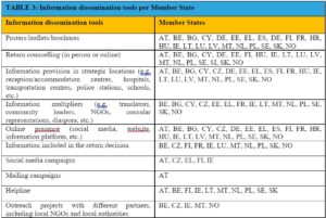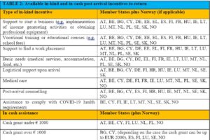 Vastvalminud Euroopa rändevõrgustiku inform „Vabatahtliku tagasipöördumise stiimulid ning motivaatorid“ analüüsib, millised faktorid mõjutavad inimeste otsuseid, kes kaaluvad riigist vabatahtlikult lahkumist olukorras, kus neil ei ole seaduslikku alust riiki jäämiseks. Milliseid vabatahtliku tagasipöördumise motiveerimise ja re-integratsioonipakette liikmesriigid üldse kasutavad ning millised on sellise info levitamise kanalid. Inform peaks aitama kaasa liikmesriikide parimate praktikate laiendamisele, et vabatahtlik tagasipöördumine oleks motiveeriv lahendus kõikides liikmesriikides. Informi andis oma sisendi 24 liikmesriiki (edaspidi LR) + Norra.