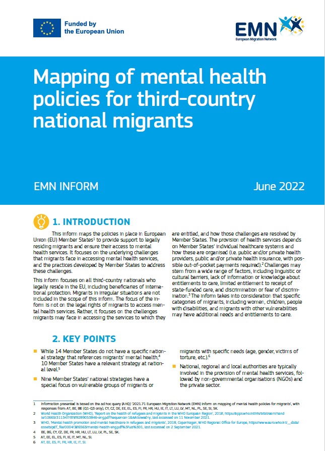 New EMN inform published: Mapping of mental health policies for third-country national migrants