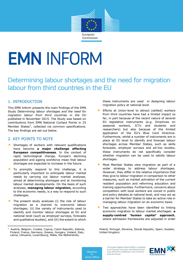 Determining labour shortages and the need for migration labour from third countries in the EU