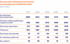 Elamislubade arv kasvas võrreldes 2020. aastaga peaaegu kõikide aluste lõikes – pererändes oli tõus 35%, õpirändes 102%, töörändes 7% (sealjuures tippspetsialistide arv kasvas 47%, kuid iduettevõtluses töötavate välismaalaste arv vähenes 18%). Vähesel määral aga langes elamislubade arv ettevõtluses -4%.