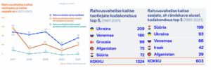 Viimastel aastatel on rahvusvahelise kaitse taotlejate arv püsinud suhteliselt madalana, kuid 2021. aastal kasvas taotlejate arv võrreldes 2020. aastaga 65%. Peamiseks põhjuseks oli 2021. a eskaleerunud olukord Afganistanis, mille tulemusel otsustas Vabariigi Valitsus Eestisse vastu võtta kuni 30 Eesti ja meie liitlastega koostööd teinud afgaani. 2021. a saabus Eestisse 16 Afganistanist evakueeritud isikut.