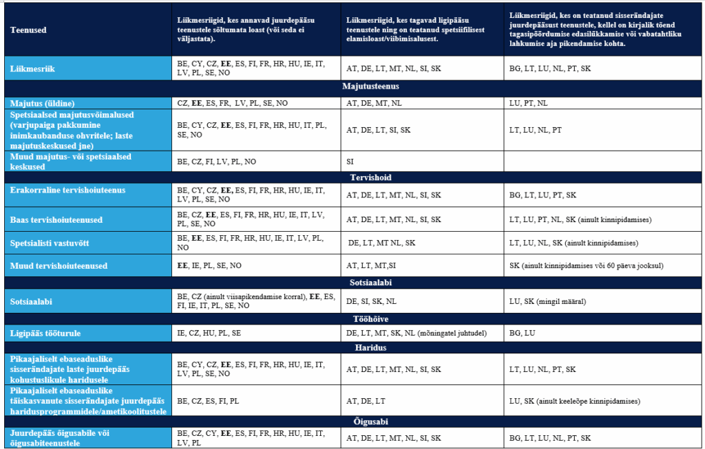[caption id="attachment_5854" align="alignnone" width="1024"] Ebaseaduslikult riigis viibivate isikute teenustele tagatud juurdepääs, vastavalt isiku viibimise alusele[/caption]
