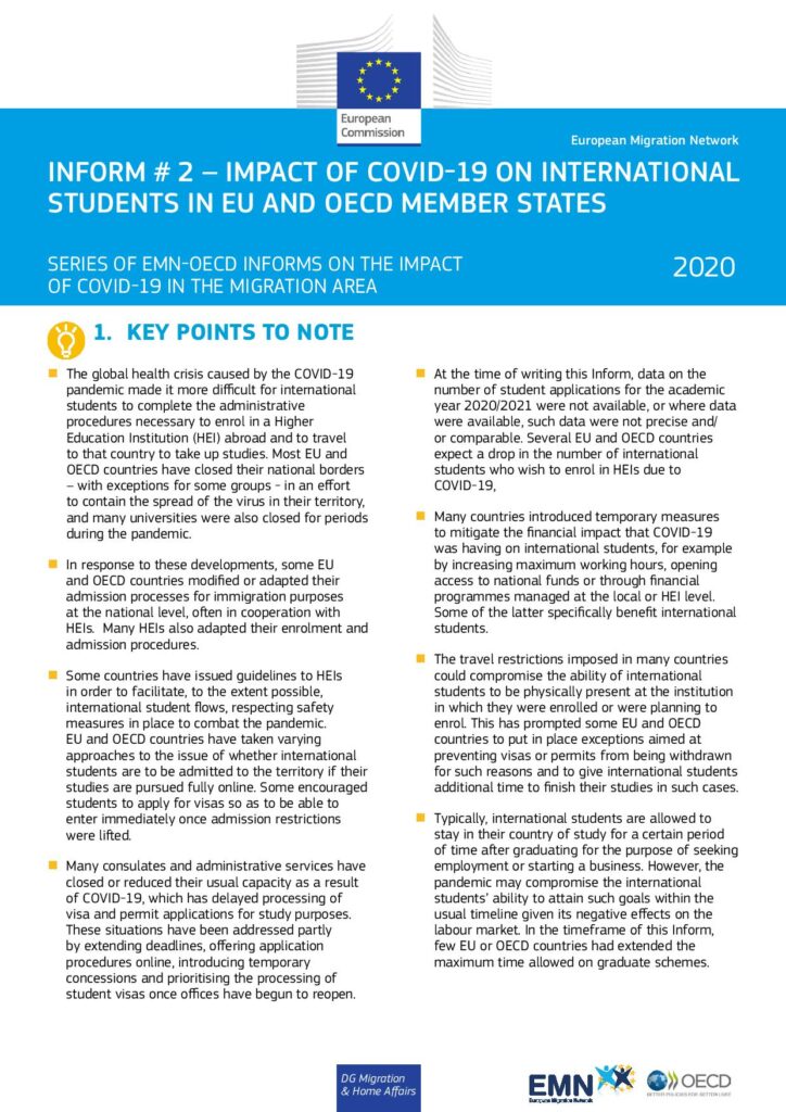 Inform #2: COVID-19 mõjud välistudengitele ELi ja OECD liikmesriikides