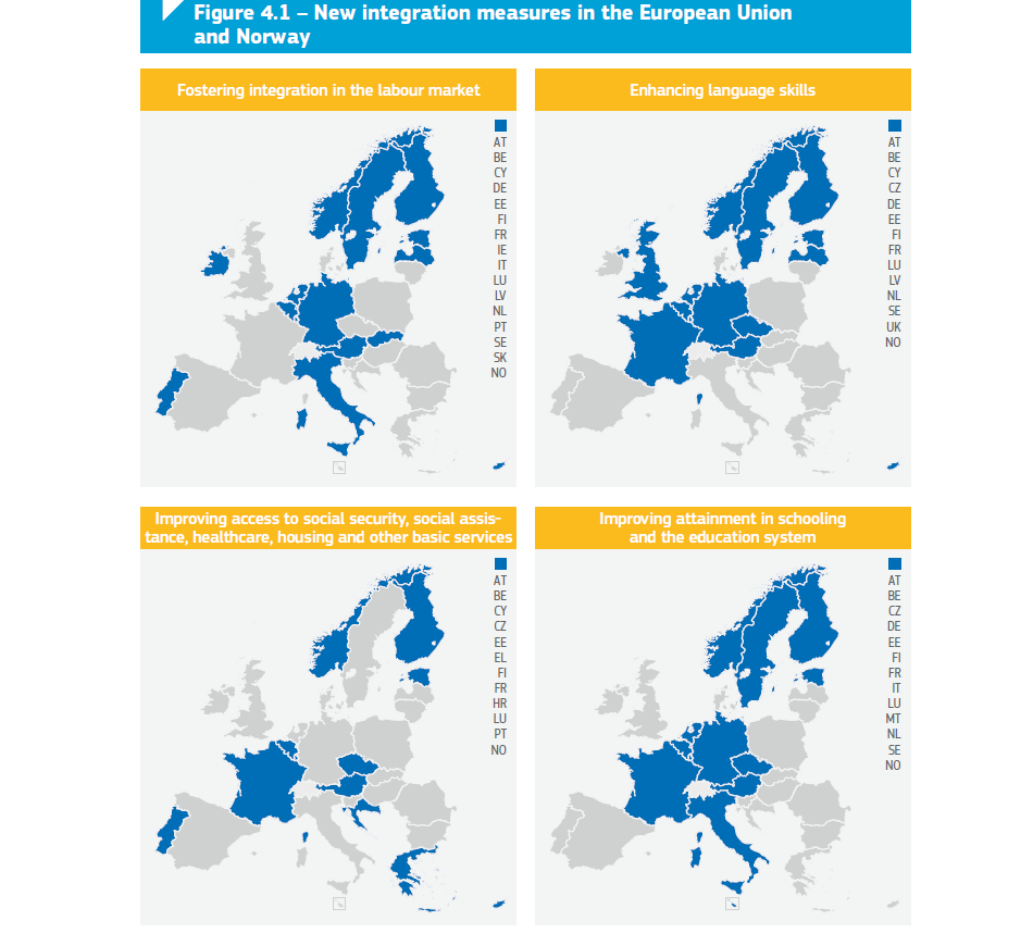 Uued sisserändajate integratsiooni meetmed  2019. aastal oli fookuses ka sisserändajate oskuste tõhusam rakendamine, nende integratsioon ja kaasamine. Keskenduti tööturualasele integratsioonile, keeleoskuse parandamisele ning hariduse omandamisele. Keeleoskuse omandamist ning haridust puudutavad meetmed olid jõuliselt suunatud just lastele ning teismelistele, aga ka rahvusvahelise kaitse saajatele. Mitmed riigid võtsid või plaanisid kasutusele võtta kohustuslikud integratsiooni meetmed. Näiteks Norras tehti ettepanek muuta seadusandlust, mille tulemusel saaks karjäärinõustamine ja oskuste kaardistamine kolmanda riigi kodanikele kohustuslikuks. Parema integreerituse vaatepunktist tehti jõupingutusi vähendamaks ühiskonnas diskrimineerimise ilminguid - viidi läbi kampaaniaid üldsuse teadlikkuse tõstmiseks diskrimineerimise olemusest ning tõsteti ametnike võimekust diskrimineerimisjuhtumeid adresseerida. Piirihaldus ja ebaseaduslik ränne Ka kontroll piiride ning ebaseadusliku rände osas on tõhustunud. Suurim valdkondlik võit oli kindlasti ebaseaduslike piiriületuste arvu vähenemine Euroopa Liidus, mis tulenes peamiselt nende arvu vähenemisest Lääne- ja Kesk-Vahemere piirkonnas. Ebaseaduslike piiriületuste vähenemine võis olla seotud samuti piirikontrolli järjepideva tugevdamisega liikmesriikides. Näiteks võeti kasutusele uusi tehnoloogilisi lahendusi, suurendati piirivalvepersonali hulka ning tehti koostööd kolmandate riikidega.  Schengeni riikide pere saab suure tõenäosusega varsti täiendust Horvaatia näol, sest Euroopa Komisjon leidis, et Horvaatia on täitnud kõik liitumiseks vajalikud nõuded. Lisaks esitas eelmisel aastal oma avalduse Schengeni alaga liitumiseks ka Küpros.
